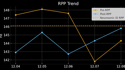 Maya began Neurosonic Therapy with long-term Morgellons-associated symptoms, including chronic tension, altered scalp sensations, emotional overload, and autonomic hypervigilance. Across five Neurosonic Therapy sessions, her system consistently shifted toward lower physiological load, with measurable improvements in her Resonant Pitch Point and clear episodes of physical softening, emotional release, and increased internal coherence. Her post-session voice data converged toward a healthier emerging baseline, supporting the decision to use Session 12.08 as a stabilization protocol for continued regulation and symptom improvement related to Morgellons.